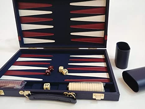 15″ Blue With Burgundy Stripe Backgammon