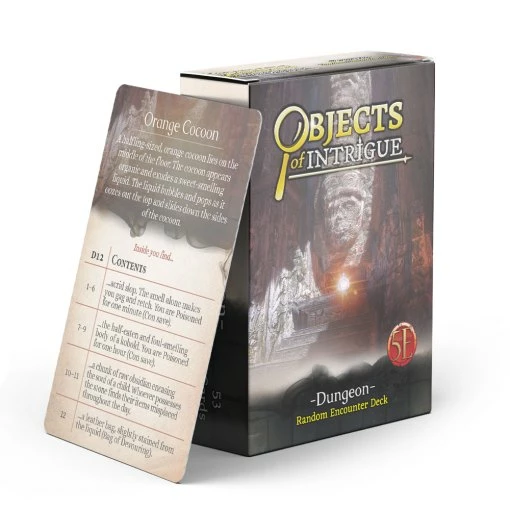 Bring hundreds of randomized possibilities to your game table with Objects of Intrigue: Dungeon! Roll the die to see what fascinating goodies your adventurers happen upon, and hope that all ends well…