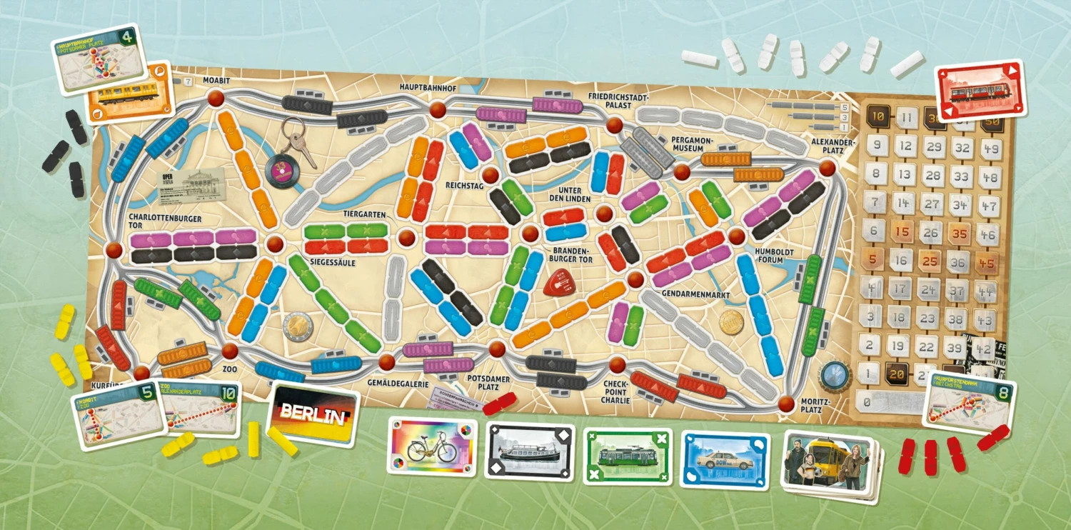 In Ticket to Ride: Berlin, players race one another to visit the most iconic locations of the city and complete their Destination Tickets. The winning player will utilize Berlin’s streetcars and, for the first time, will venture under the streets to incorporate a subway system into their routes.